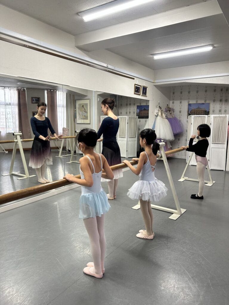 小さな生徒さんにとっては難しく感じるバーレッスンですが、良いところは褒めて改善できる事を伝えると集中してレッスンを受けている様子が伝わってきます。